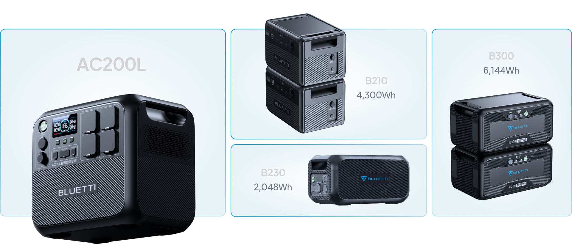 Perfectly compatible with B210, B230, and B300 expansion batteries, you can elevate the capacity of AC200L to an incredible 8,192Wh. Making the full potential of limitless power has never been easier.