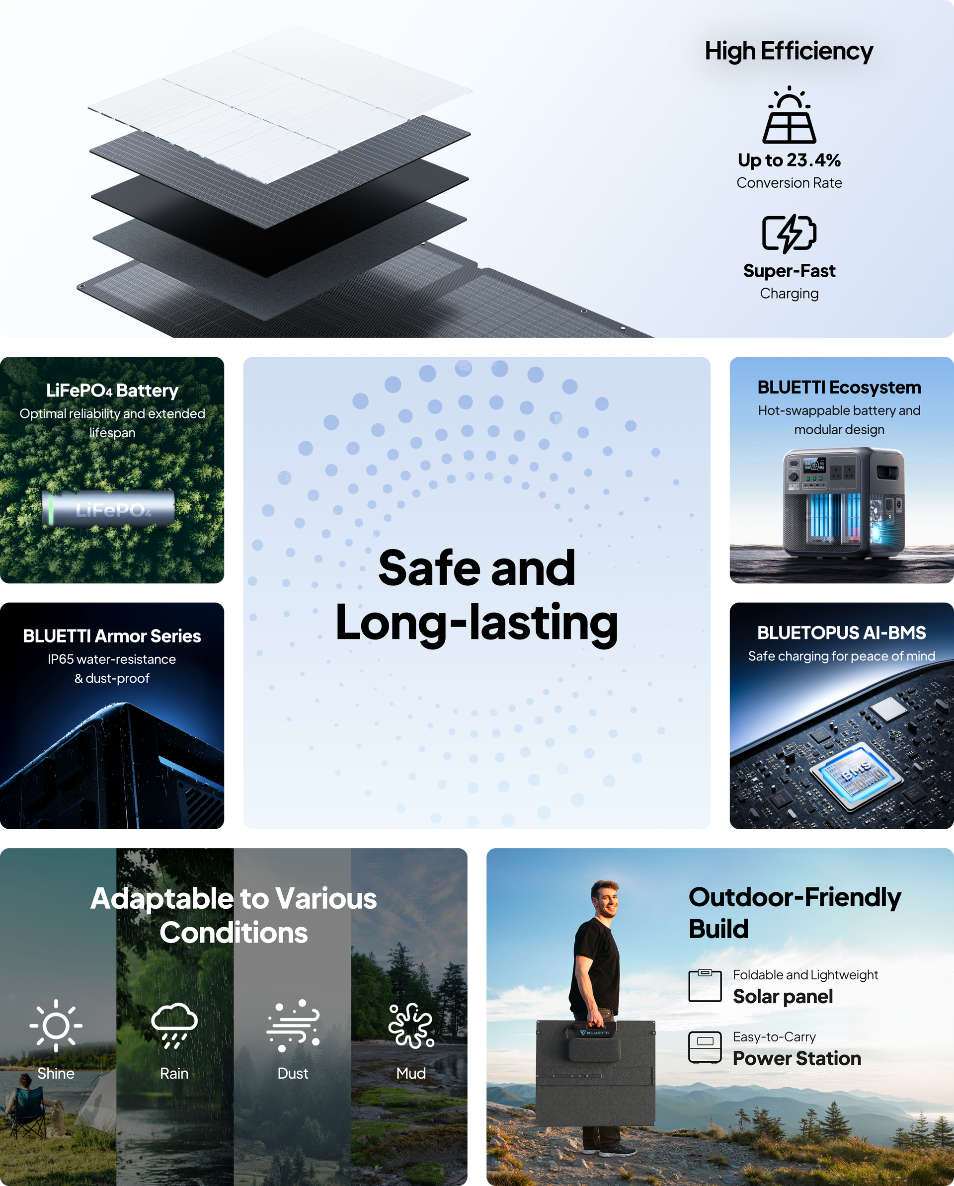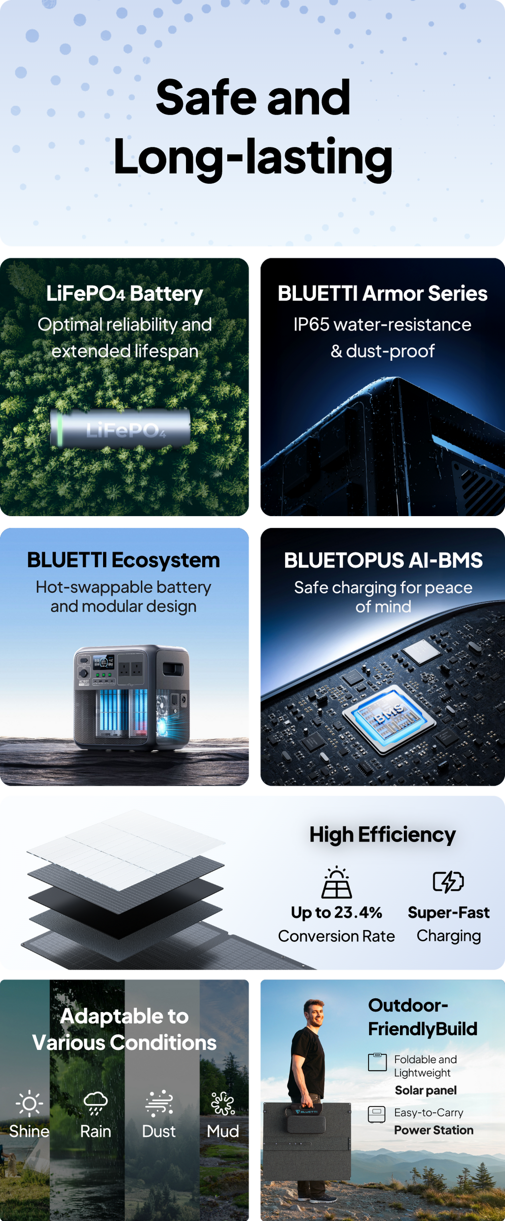 BLUETTI solar generators provide a quiet, ecofriendly solutionfor power outages and off-grid trips.