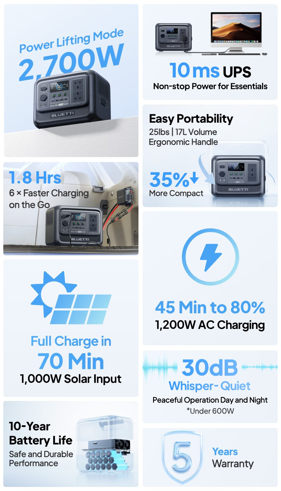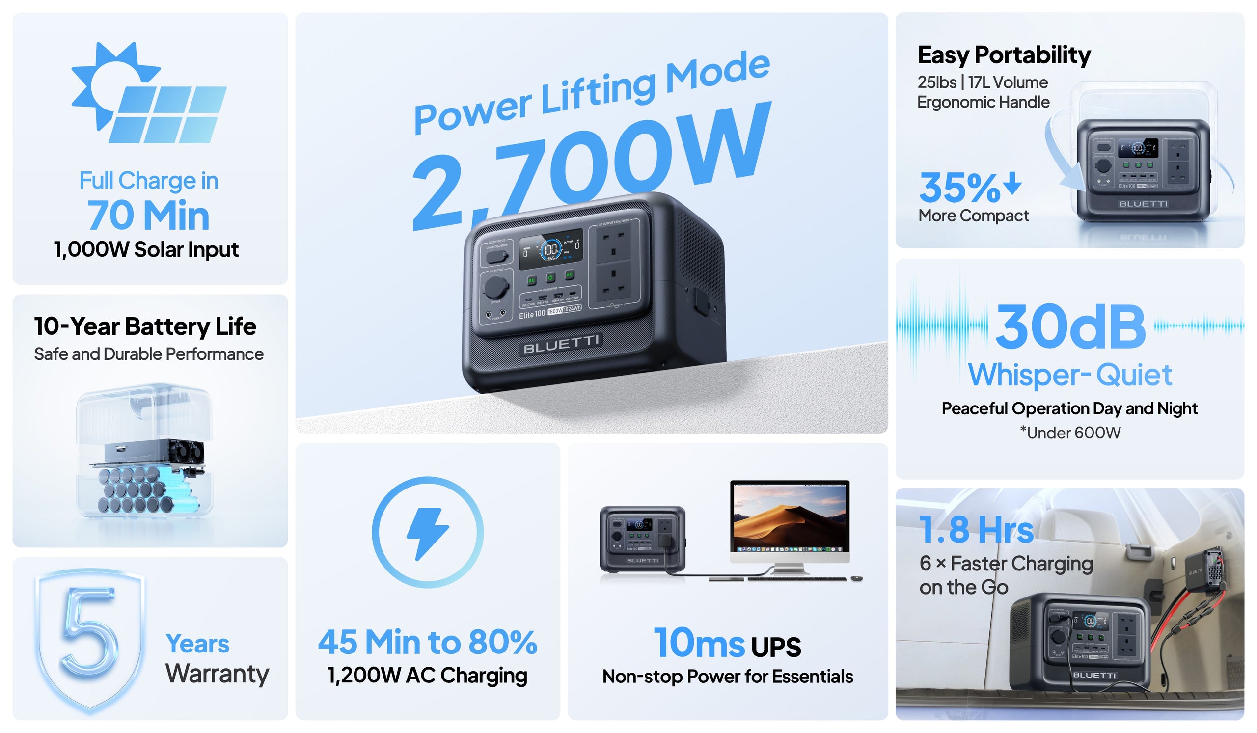 The Elite 100 V2 packs up to 2,700W of reliable power in a travel-sized build—ready to energize most demanding devices with ease all along your way.