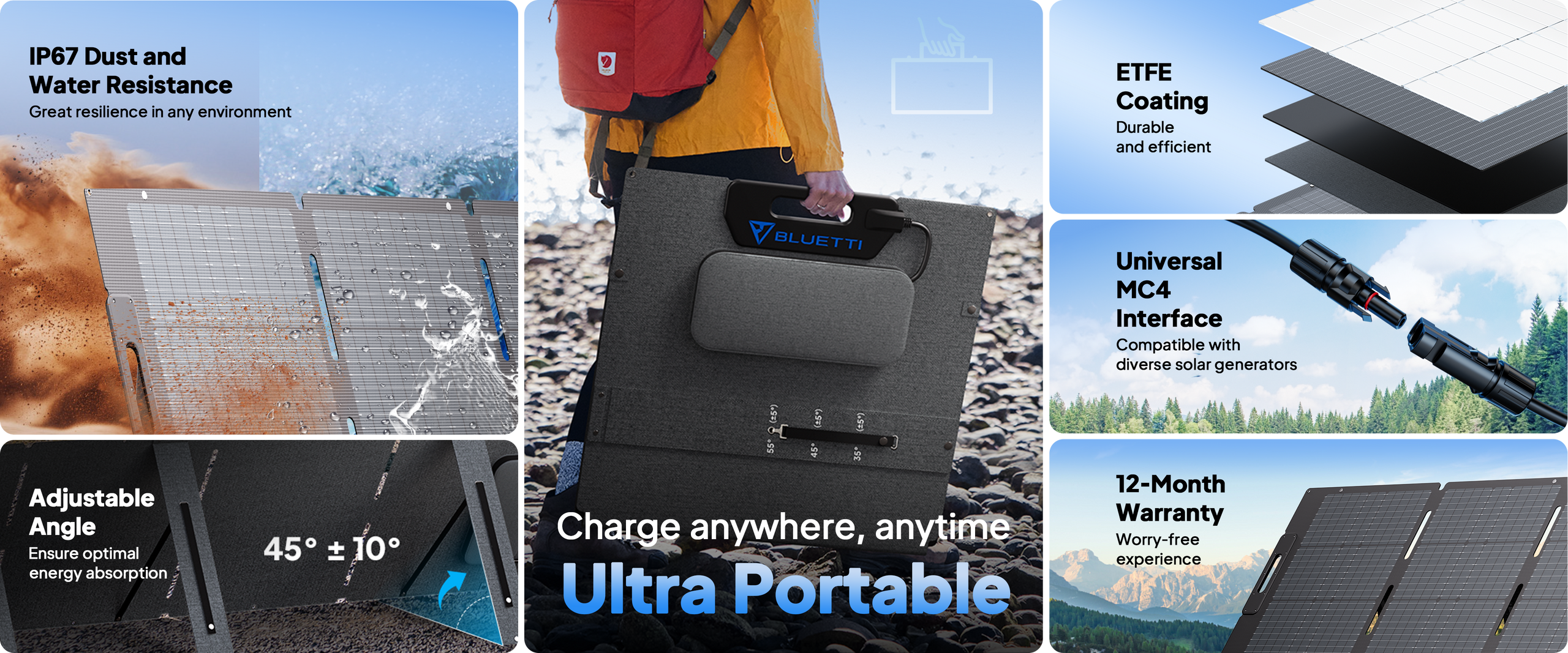 A:Under the same condition, BLUETTI PV series solar panels produce more power from limited sunlight.