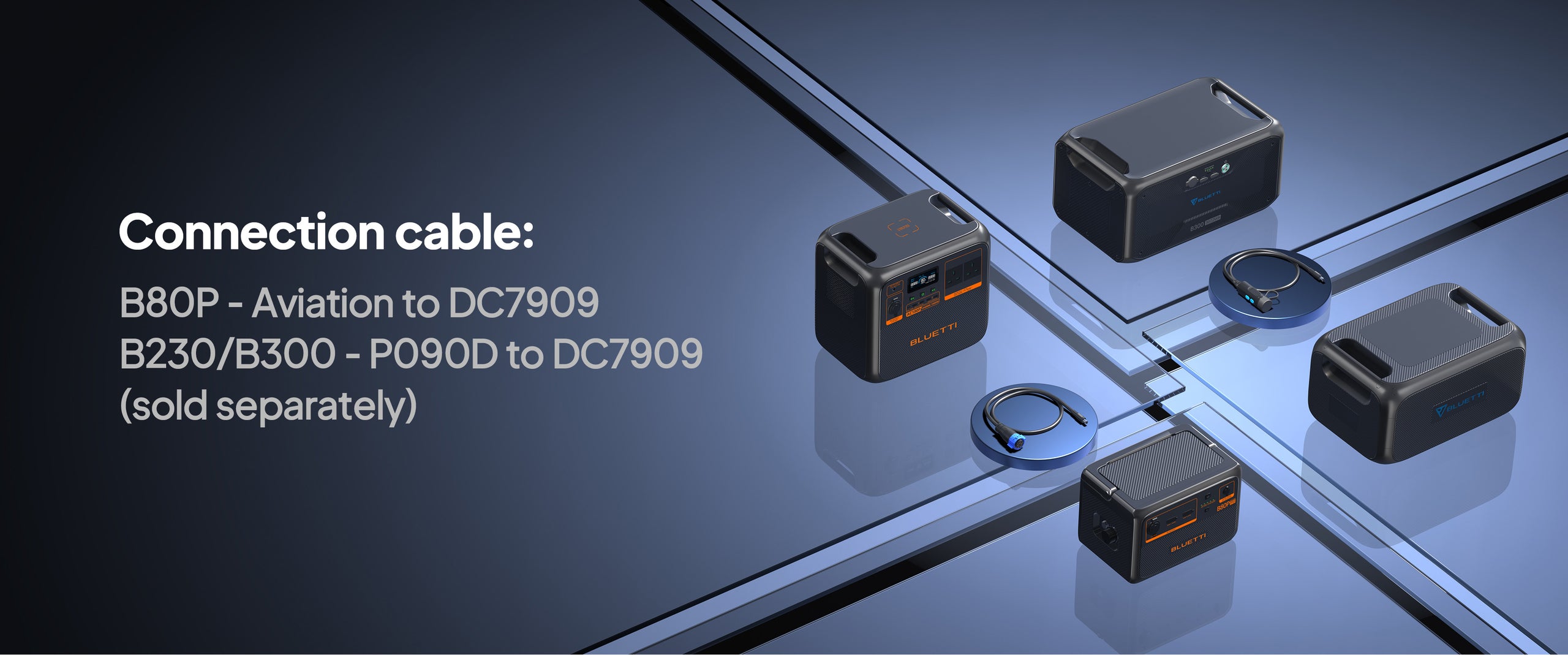 A:Currently, the AC180P supports capacity expansion with B80, B230, or B300 batteries. To connect B80 batteries, you'll need the Aviation to DC7909 cable*, while the P090D cable is required for B230/B300 batteries. Please make sure the batteries are in Power Bank Mode.