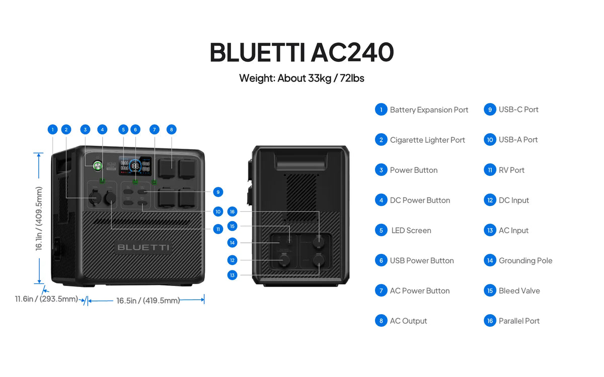A: AC240 has a built-in intelligent BMS (Battery Management System) that automatically adjusts the charging power in response to the battery temperature and SoC (State of Charge), thus protecting the battery and extending its lifespan.