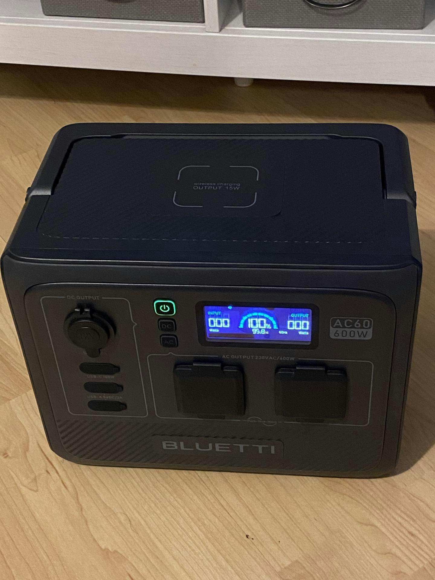 A: The AC60 supports a maximum input of 600W. Plug it into a wall outlet, turn on the Turbo Charging mode on the BLUETTI App, and you can charge it up in 1.2-1.7 hours. -