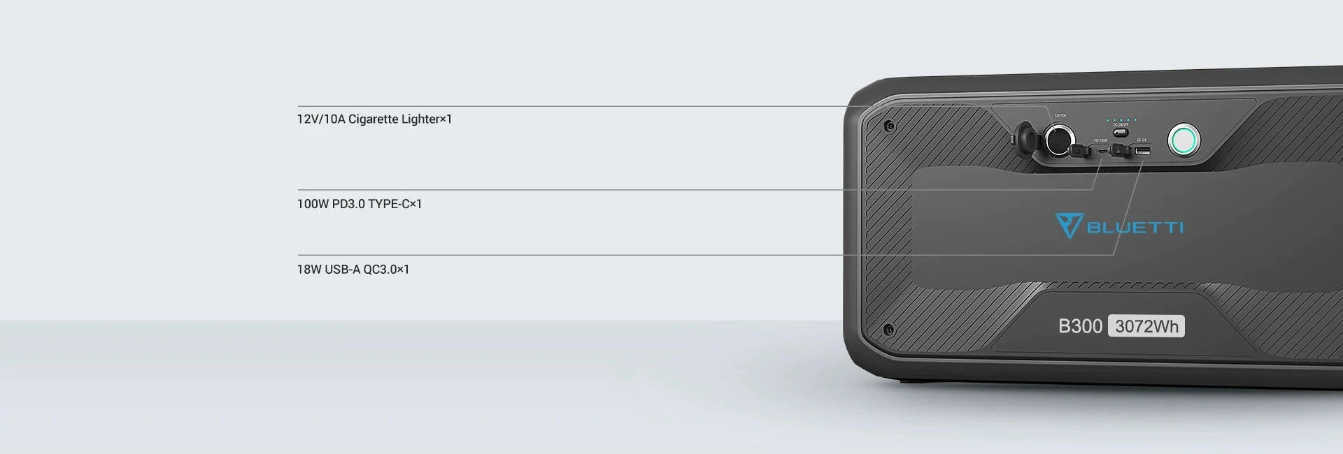 A:Yes. B300 features a 100W USB-C, a USB-A and a 12V DC output ports. The battery module can work flawlessly when standalone.