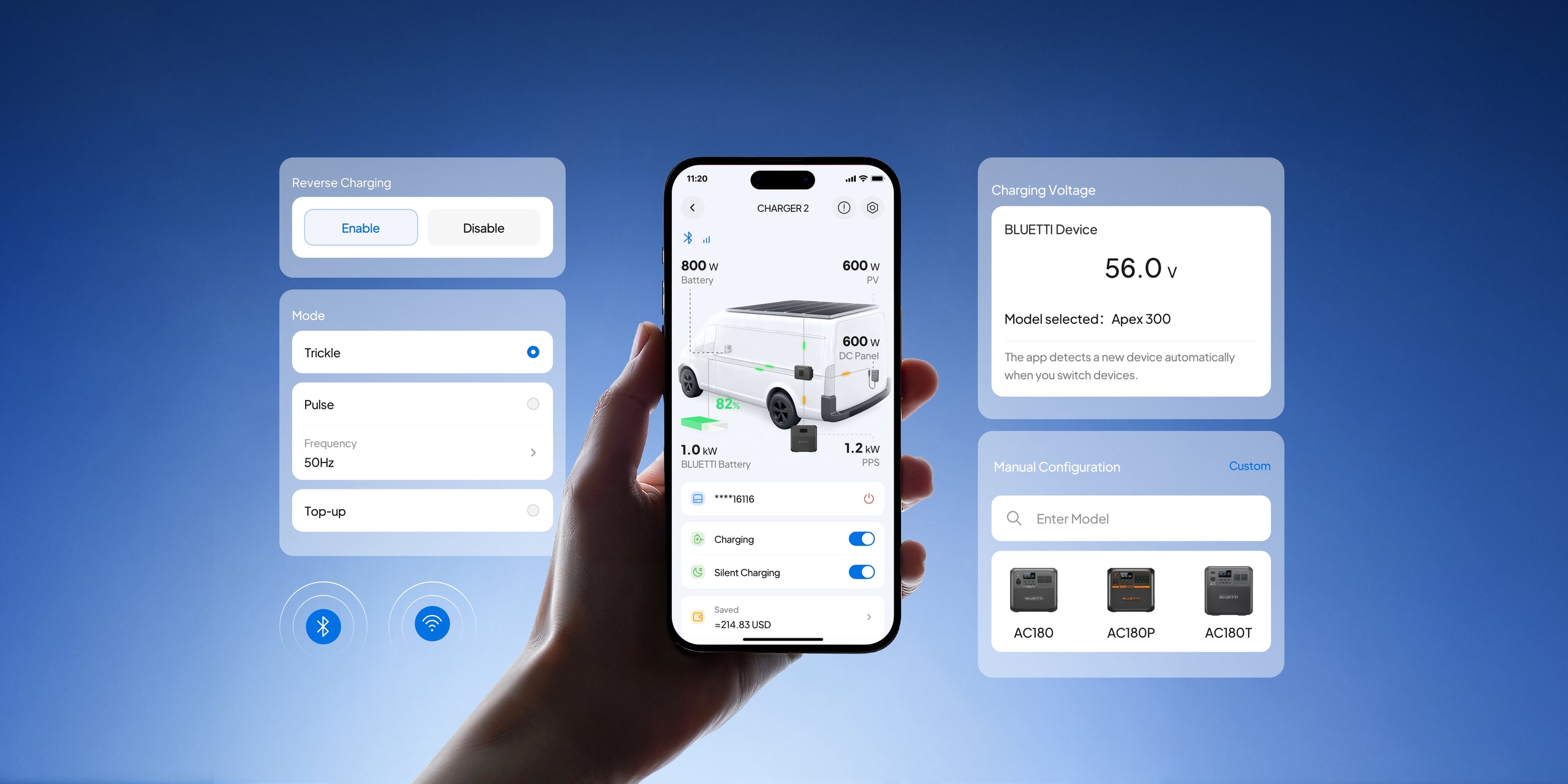 Charger 2 is your central power hub. It automatically balances power input and output, and reverse-charges your vehicle system based on real-time conditions and your preferences.