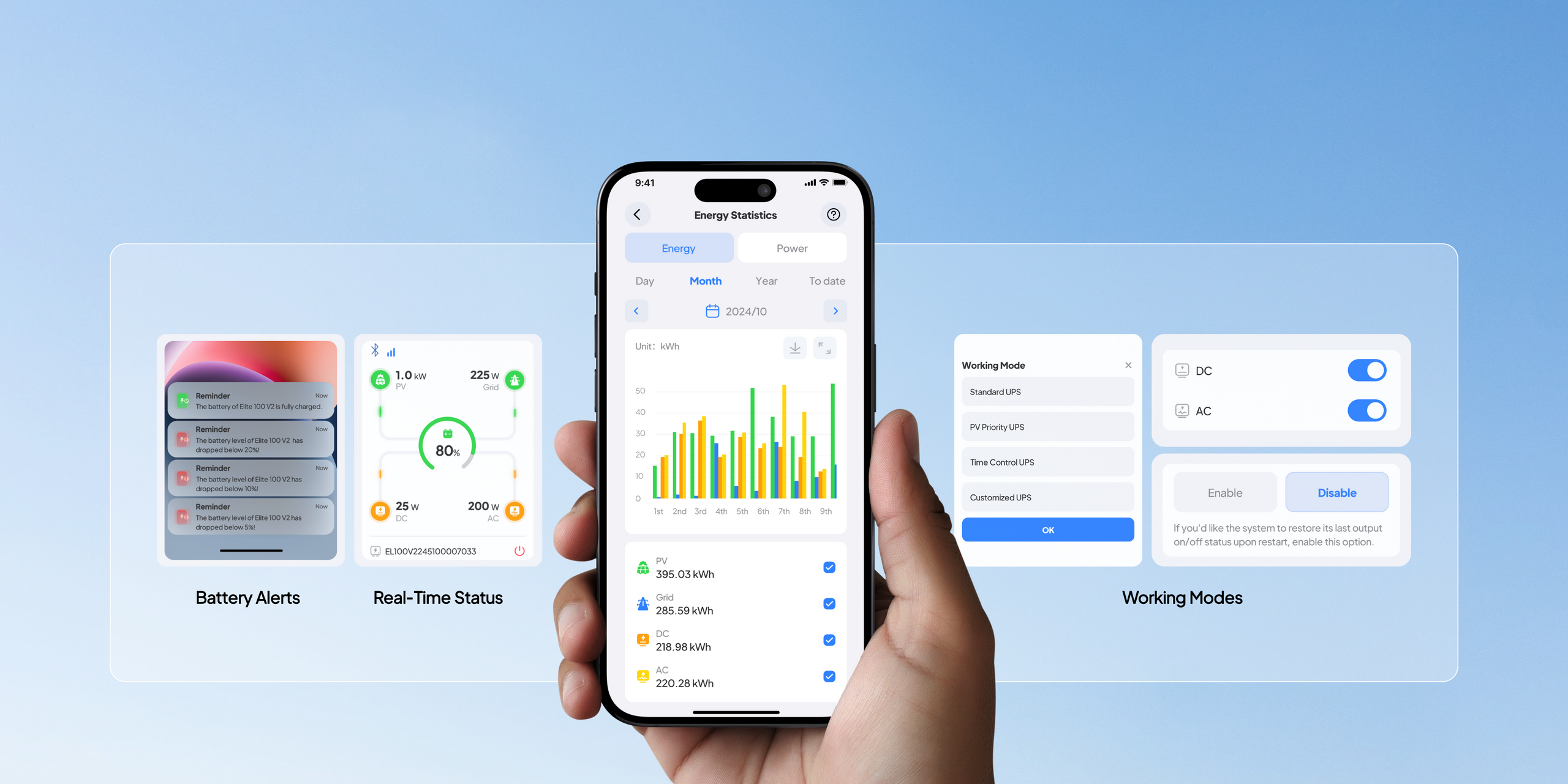 A:The BLUETTI App allows full remote control of your Elite 100 V2 via WiFi or Bluetooth. It includes several smart features to enhance your user experience: