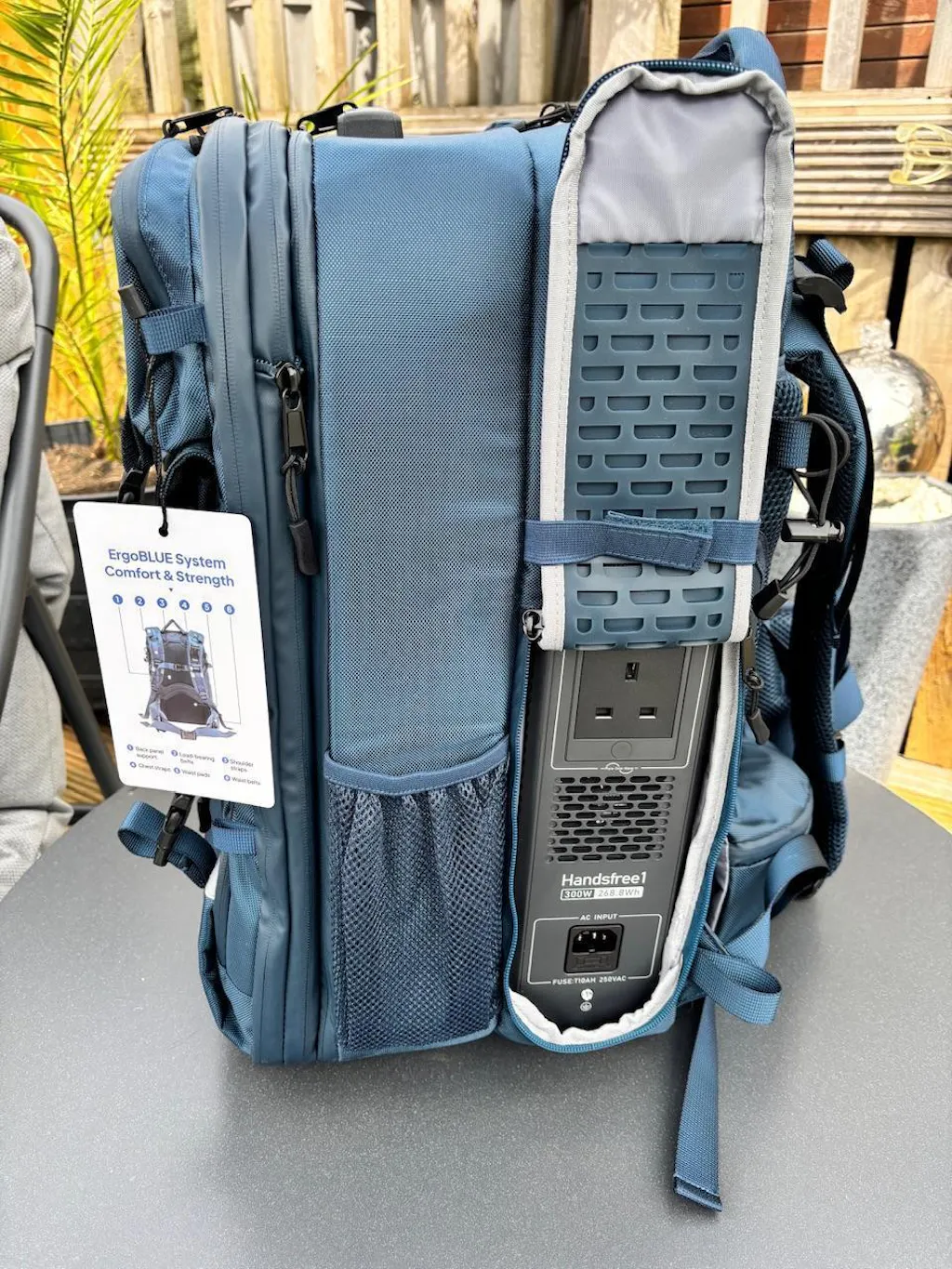 A: Yes, the Handsfree includes a detachable power station and a backpack - BluePack. You can use them independently based on your needs. -