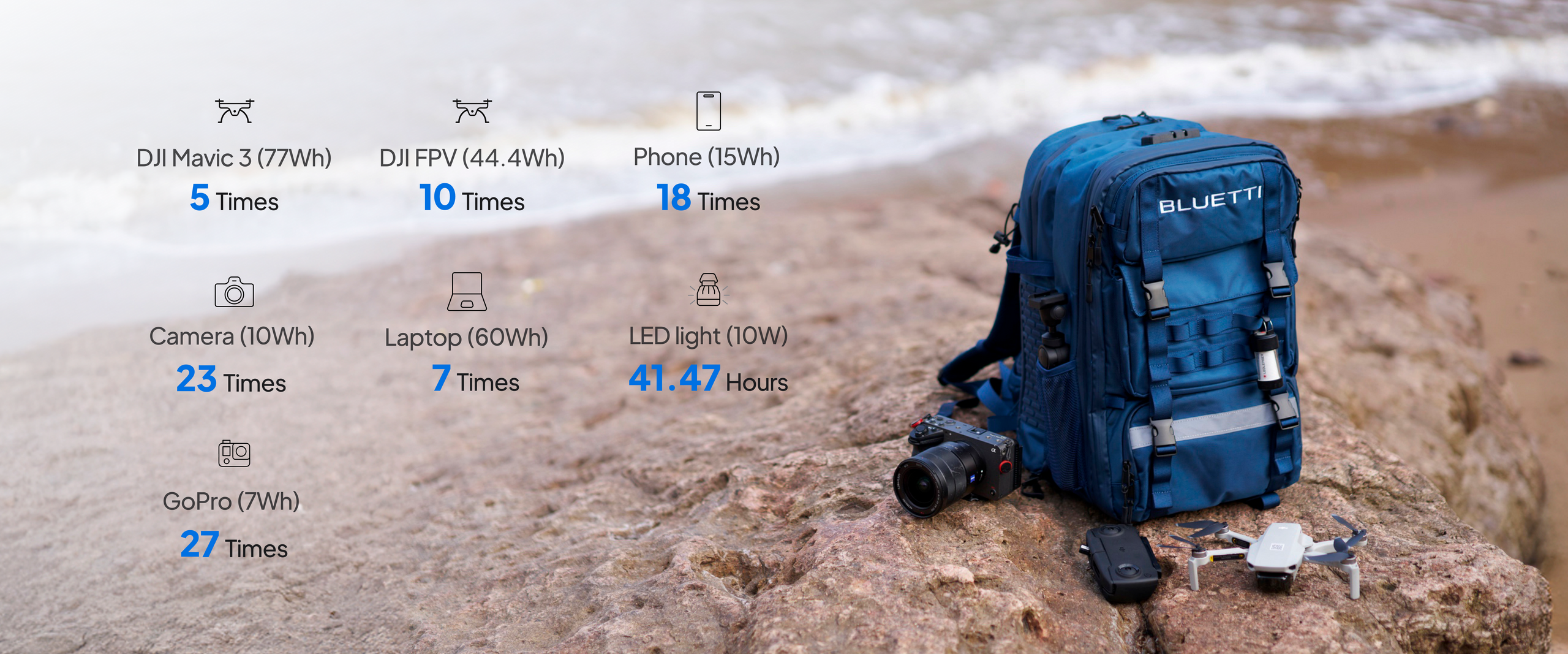 A: No, but the BluePack backpack is designed with comprehensive water resistance, featuring splash-resistant fabric, waterproof zippers, and a rain cover that can handle medium to heavy rain, ensuring protection in various outdoor conditions. Note: To safeguard the storage unit and electronics, always use the rain cover in wet weather and avoid long-term exposure to rain. -