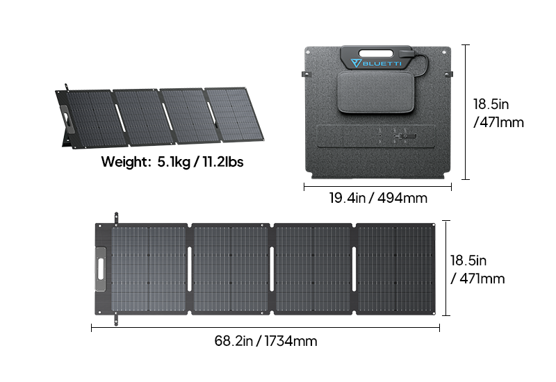 1pcs BLUETTI 120W solar panel can quickly charge the BLUETTI EB70 within 7.5-8 hrs.