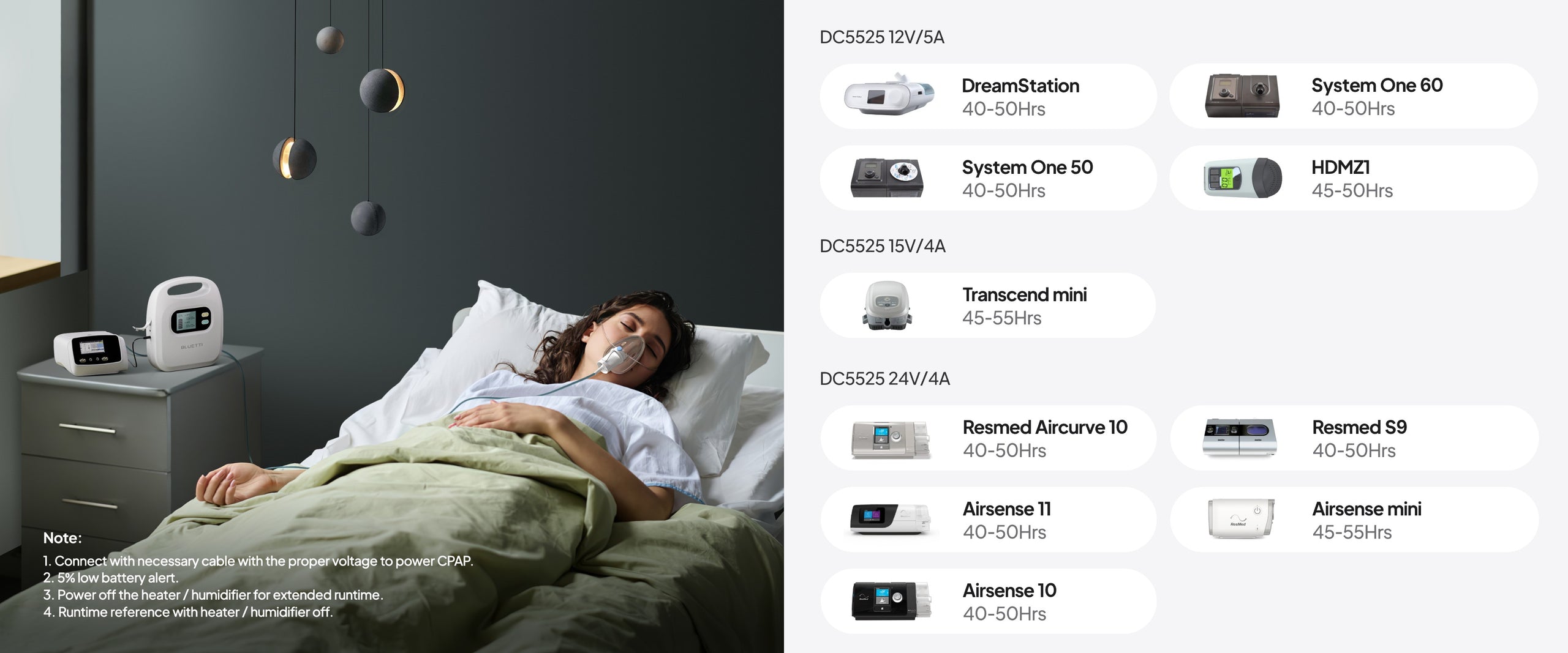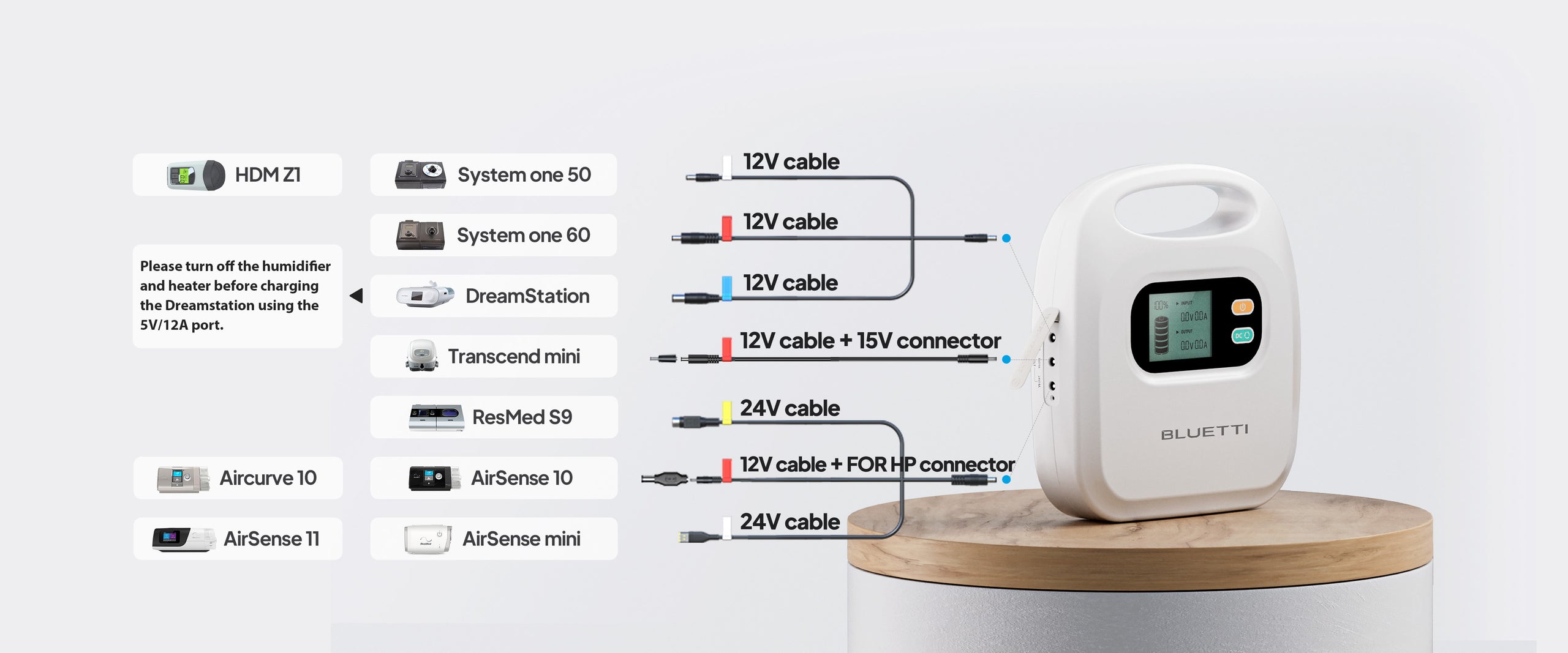 A3. X30 is compatible with over 90% of CPAPs on the market, such as Dreamstation/ SYS ONE 60 / REMstar System One1 50 / HDM Z1 / SYSTEM one 60 / Transcend Mini CPAP/ Rsemed Airsense/ Aircurve / Rsemed S9/ Airsense 11/ Airsense Mini, etc. If you're not sure about the compatibility of your specific CPAP device, please feel free to contact our service team at sale-uk@bluettipower.com -